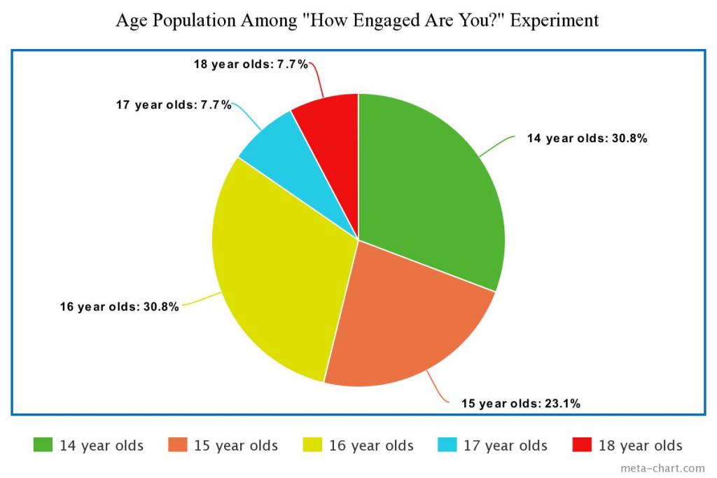 All of the participants who were apart of this experiment were asked how engaged they were on a scale 1-10, 10 being very engaged and 1 being the least engaged. After some calculations here are some averages that I have concluded: participants’ engagement levels from trial two averaged out to be an 8.1 while participants from trials one and three came out to be lower. Trial one’s engagement levels averaged out to be 6.75 and trial three’s engagement levels averaged out to be a 7.5. From these calculations it has proved that my hypothesis for this experiment was correct.
